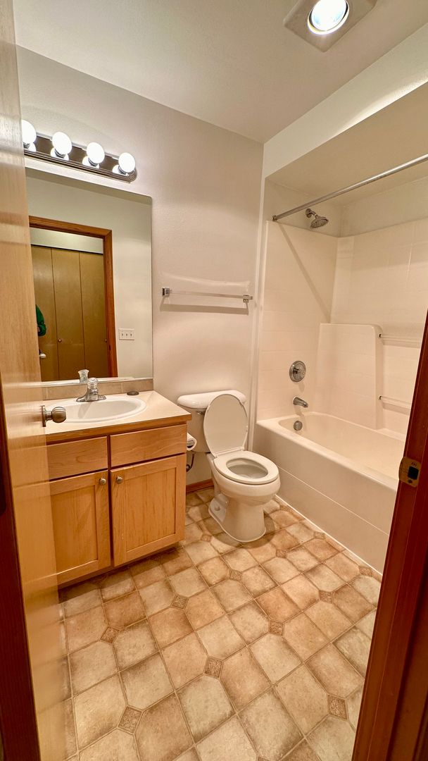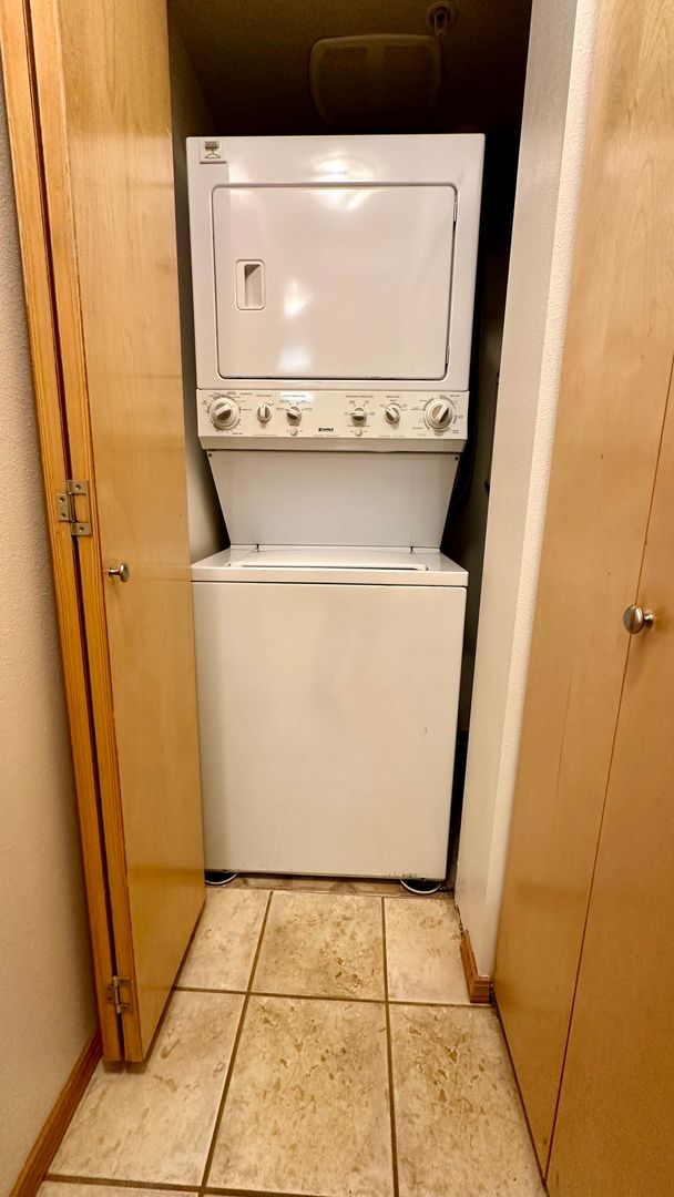 The master bedroom boasts a large closet with an organizer to keep your belongings neatly arranged. The full bathroom offers plenty of cabinet space and a tub shower. There's a washer/dryer in a separate entryway closet and an additional linen closet in the hallway. Reserved, secure parking garage stalls are available for an additional $125/month, ensuring your vehicle is safely parked.
