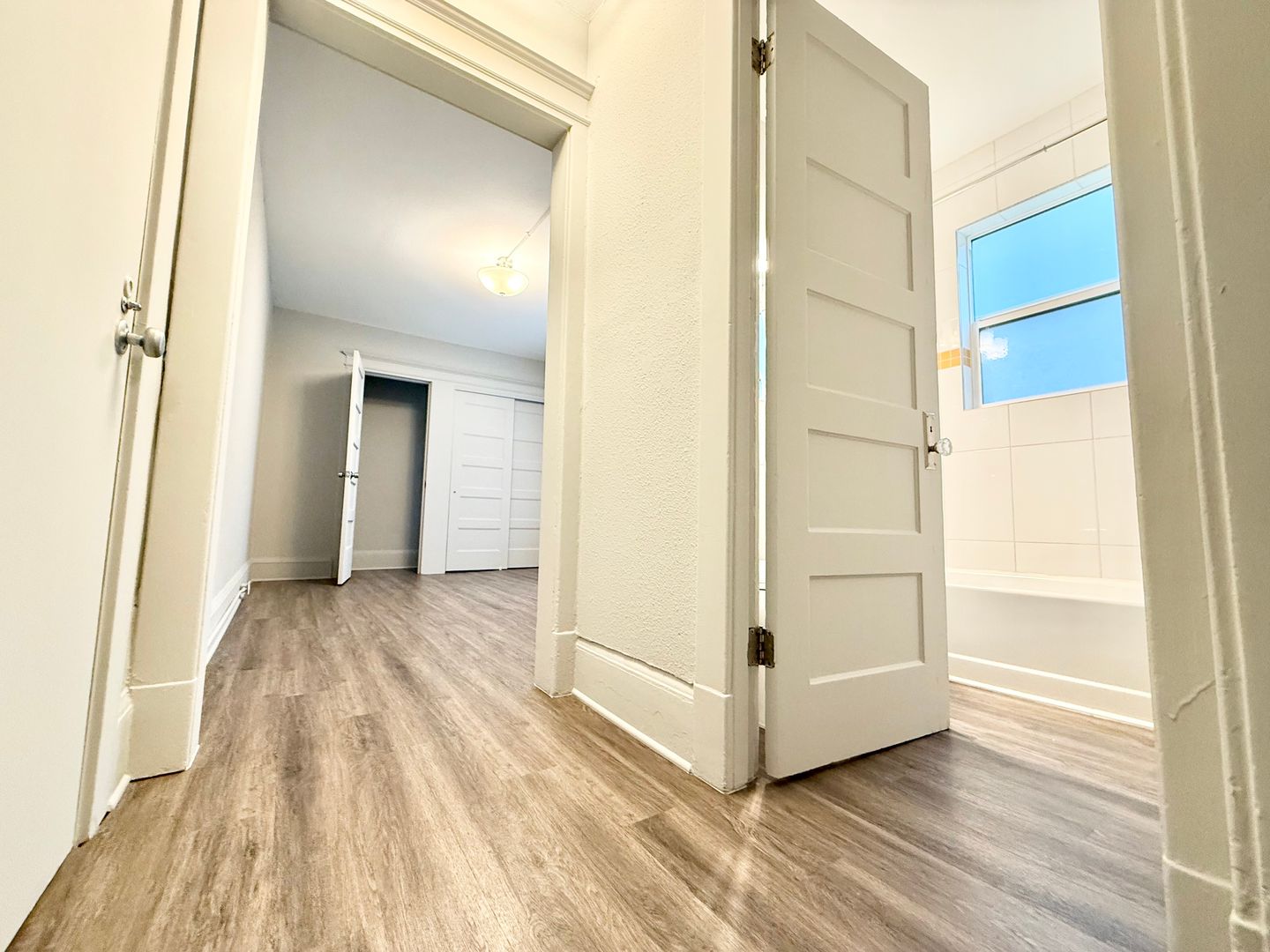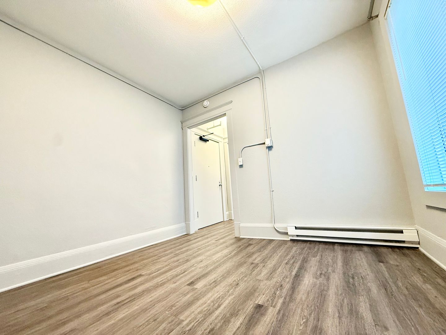 This cozy 1-bedroom, 1-bath unit has been updated with newly installed hardwood floors, fresh kitchen cabinets, and a full bathroom.